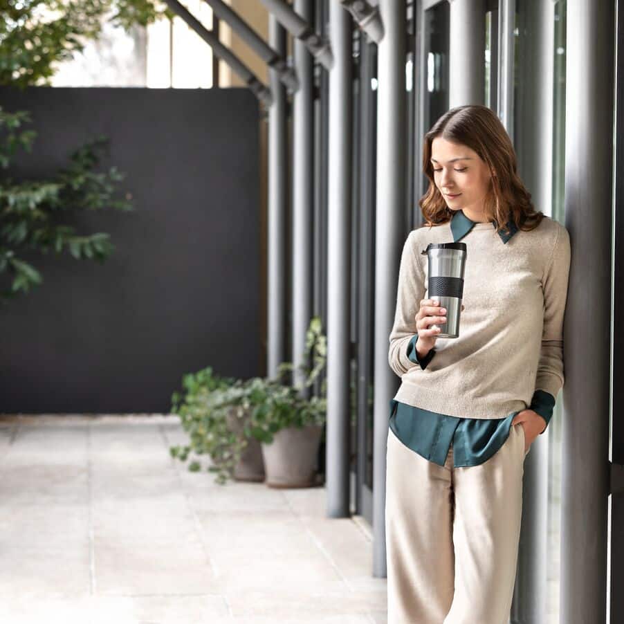 • Das doppelwandige Vakuumdesign sorgt dafür, dass heiße und kalte Getränke länger ihre ideale Temperatur beibehalten.