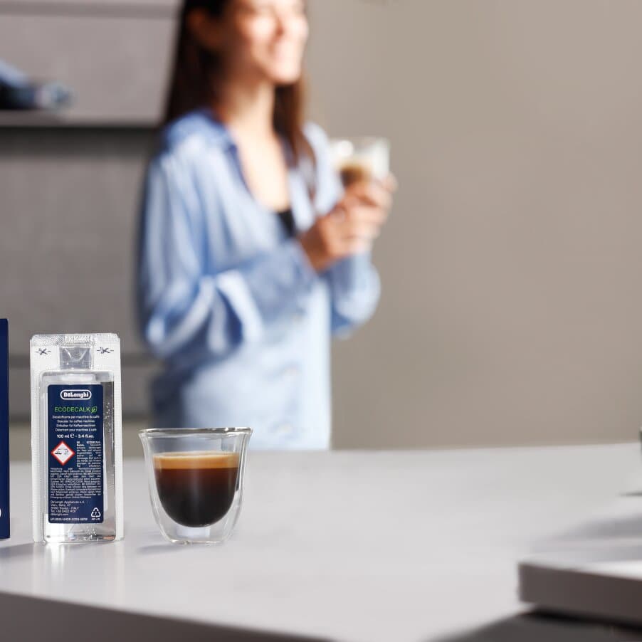 De'Longhi empfiehlt den EcoDecalk Entkalker für alle seine Kaffeemaschinen. Die perfekte Formel ist effektiver gegen Kalk und sanfter zur Maschine als herkömmliche Entkalker auf Zitronensäurebasis. In diesem umweltfreundlichen Entkalker wird natürliche Milchsäure aus Pflanzen verwendet, die die Umwelt nicht verunreinigt.