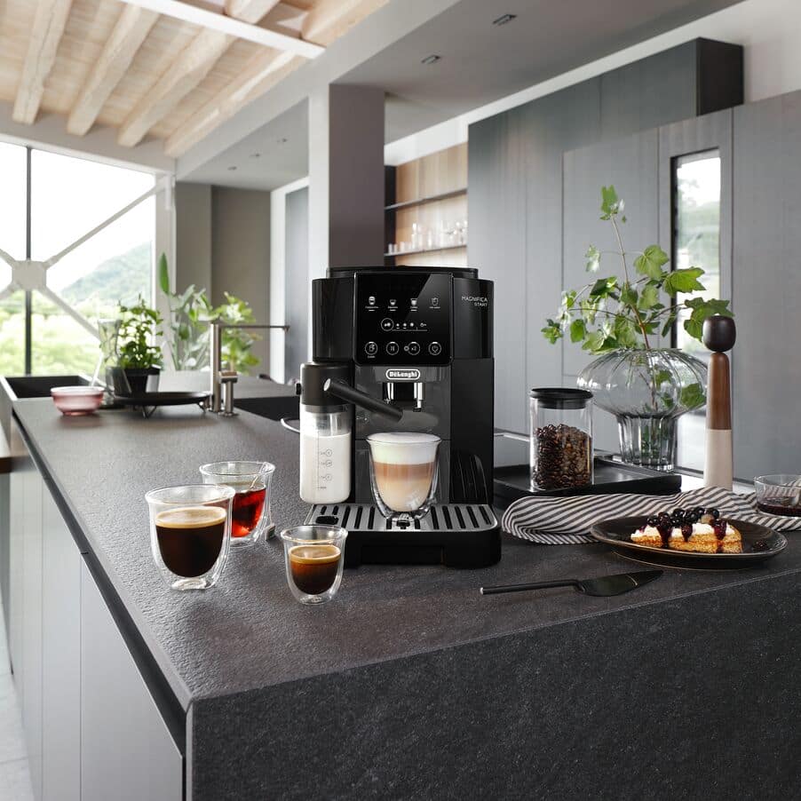Tauchen Sie ein in die Welt des Kaffees - von der Bohne in die Tasse. Mit der Magnifica Start von De'Longhi, die Ihnen alles bietet, was Sie für die Zubereitung Ihres espressobasierten Lieblingskaffeegetränks zu Hause benötigen. Die Maschine verfügt über das exklusive LatteCrema Hot Milchsystem, um Ihre Getränke mit feinem Milchschaum zu veredeln, sowie Ihnen eine Auswahl an Getränken auf Knopfdruck ermöglicht.